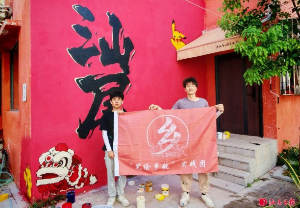 華南師范大學(xué)“筆繪鄉(xiāng)貌”實踐團在老舊小區(qū)打造新潮墻繪打卡點。