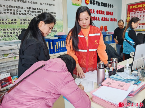 海濱社區(qū)工作人員為前來辦事群眾辦理業(yè)務(wù)。