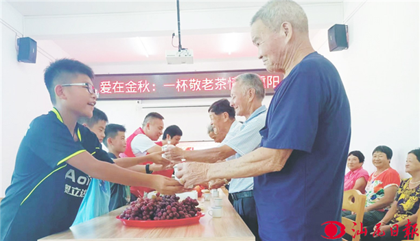汕尾日報訊 (通訊員 余克剛 文/圖)10月2日,城區(qū)東涌鎮(zhèn)寶樓村組織村20多位長者在村黨群服務(wù)中心開展“愛在金秋,一杯敬老茶情暖重陽”活動(如圖)。