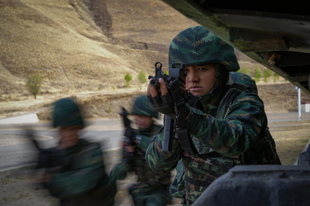 ↑達娃卓嘎(右一)和戰(zhàn)友進行戰(zhàn)術(shù)訓(xùn)練