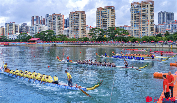 6月10日端午節(jié),我市多個村(社區(qū))舉辦龍舟賽活動。這是當天在城區(qū)品清湖上舉行的和順村十二生肖龍舟賽現(xiàn)場,以十二生肖命名的12支龍舟隊逐浪競渡,品清湖畔觀眾如潮、場面壯觀。