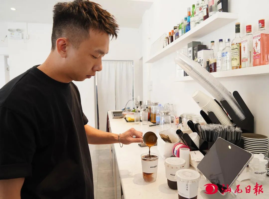 店主介紹,他已經(jīng)在汕尾開了兩家店,根據(jù)目前疫情后經(jīng)濟發(fā)展形勢,將在汕尾或其他城市開第三家、第四家咖啡店,打造城市品牌聯(lián)動效應。
