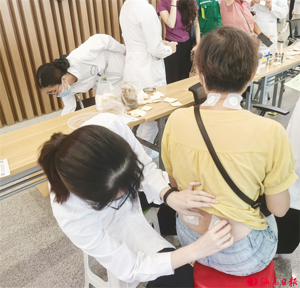 正在貼“三伏貼”的市民。