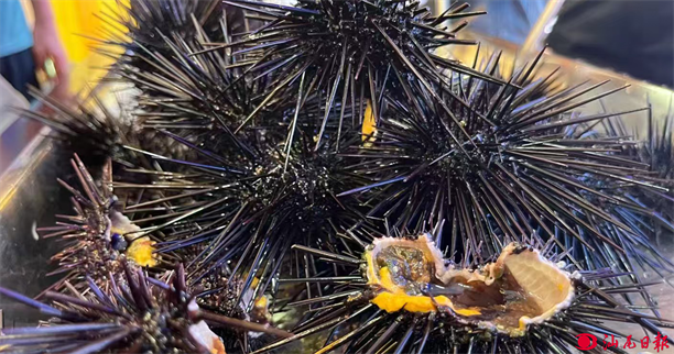 海膽 汕尾的紫海膽主產(chǎn)于捷勝鎮(zhèn)至紅海灣遮浪街道海域,外殼呈深紫色,因該海域水質潔凈、藻類豐富,生產(chǎn)的紫海膽色澤金黃,味道鮮甜馥郁,被譽為“海味黃金”。憑借獨特口感與豐富營養(yǎng),海膽始終占據(jù)著高端海產(chǎn)市場的重要位置,炒海膽沙、煎海膽粿、刺身海膽、海膽蒸蛋……來汕尾旅游,都應該品嘗一頓特色的“海膽餐”。