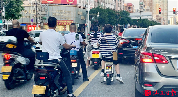 記者來(lái)到市區(qū)文明路與四馬路交叉口,看到有多位在等待紅綠燈放行的摩托車(chē)(電動(dòng)車(chē))駕乘人員未佩戴安全頭盔。隨后,記者走訪了市區(qū)的汕尾大道、海濱大道、香江大道、東城路等路口,均發(fā)現(xiàn)不佩戴頭盔騎行的市民較以往明顯增加,其中外賣(mài)人員基本能做到佩戴頭盔出行。另外,記者在探訪中還發(fā)現(xiàn),相比于白天,晚間未佩戴頭盔的騎手明顯增多。