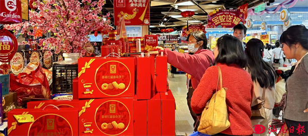市區(qū)各大商場(chǎng)、超市、店鋪掛滿蛇年裝飾,人來人往間,涌動(dòng)著充滿年味兒的消費(fèi)熱潮,活力滿滿,歡樂十足。