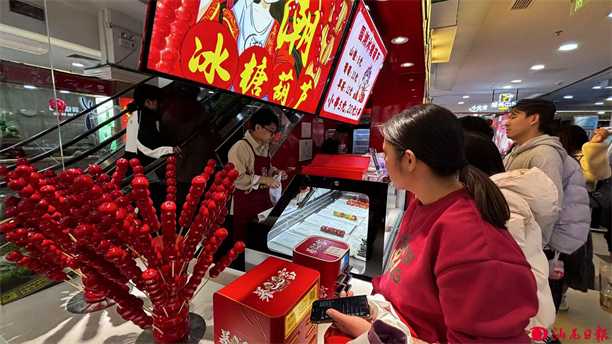 “新春快樂!請(qǐng)拿好您的糖葫蘆!”在市區(qū)一家糖葫蘆售賣攤位前,前來購(gòu)買品嘗糖葫蘆的市民游客絡(luò)繹不絕。據(jù)商家介紹,紅彤彤的糖葫蘆在春節(jié)期間廣受市民游客喜愛,一顆顆紅色喜人的小果子沾上糖,酸甜可口,既可以解饞還可以促進(jìn)消化,并且糖葫蘆的名稱中“葫蘆”二字諧音“福祿”,寓意著富貴與長(zhǎng)壽,亦為歡度新春增添了喜慶氛圍。