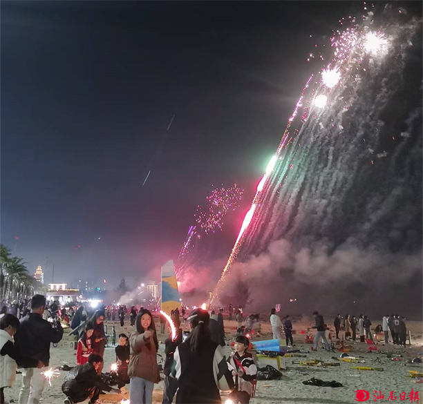 除夕夜,記者在市區(qū)春節(jié)煙花燃放點市沙灘公園(霞洋白沙灘)看到許多市民游客正燃放煙花喜迎新年,歡笑聲與一聲聲煙花炮響回蕩在除夕夜里,喜慶氛圍十分濃厚。 現(xiàn)場還有公安、消防、街道社區(qū)等工作人員在維護(hù)秩序,確保各項安全保障措施落實到位。