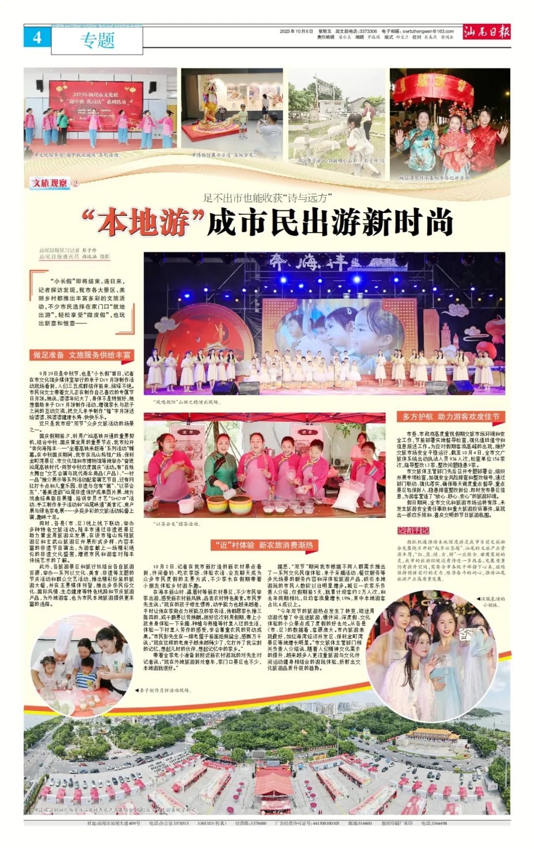 據(jù)悉,“雙節(jié)”期間我市根據(jù)不同人群需求推出了一系列文化民宿體驗(yàn)、親子采摘活動(dòng)、餐飲服務(wù)等多元場(chǎng)景的服務(wù)內(nèi)容和深體驗(yàn)旅游產(chǎn)品,吸引本地游玩的市民人數(shù)較以往明顯增多。城區(qū)一農(nóng)家樂(lè)負(fù)責(zé)人介紹,僅假期前5天,就累計(jì)迎客約2萬(wàn)人次,和去年同期相比,日均客流量增長(zhǎng)19%,其中本地游客占比6成以上。