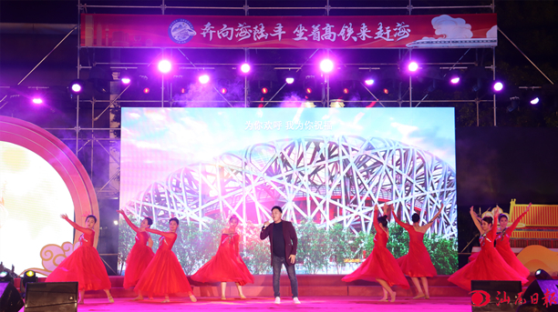 9月28日晚,“奮進(jìn)汕尾高鐵時(shí)代·共賀中秋歡度國慶”系列活動(dòng)啟動(dòng)儀式在市區(qū)鳳山媽祖文化廣場舉行。期間,原創(chuàng)現(xiàn)代歌舞《坐著高鐵來趕?!芬詮V汕高鐵開通為契機(jī),向大家展示了極具汕尾特色的景區(qū)景點(diǎn)和美食文化。隨后,詩詞朗誦《思故鄉(xiāng)·共嬋娟》、紅色歌曲《紅旗飄飄》、漁歌表演《同唱歌》、情景表演《月下相約》等具有中秋節(jié)日元素、汕尾地域特色的節(jié)目輪番上演,為廣大市民游客奉上了一場精彩紛呈的文化盛宴?,F(xiàn)場喝彩聲、掌聲不斷,節(jié)日氛圍濃厚。