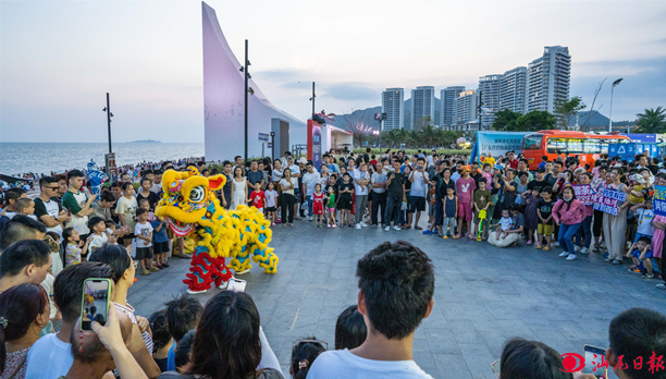 此外,城區(qū)還在市區(qū)二馬路口舉辦“樂享民俗踏浪放歌”路演活動(dòng)、在保利金町灣舉辦“金町灣美食音樂節(jié)”,本土流行歌手、搖滾歌手、民俗歌手、漁歌表演隊(duì)等進(jìn)行現(xiàn)場互動(dòng)表演,讓游客在品嘗特色美食的同時(shí)享受本土特色音樂,一飽“口福、眼福、耳?!?。