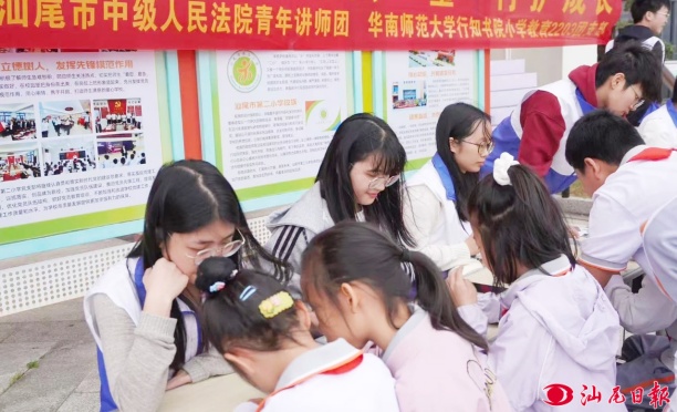 汕尾日報訊 (記者 劉佳倫 通訊員 李勝浩 文/圖) 近日,汕尾中院青年講師團聯(lián)合華南師范大學行知書院大學生志愿者,在汕尾市第二小學開展“普法集市潤童心,與法‘童’行護成長”主題普法活動,將生動的禁毒教育與趣味法治游戲送入校園,為全校學生送上了一場別開生面的法治課。