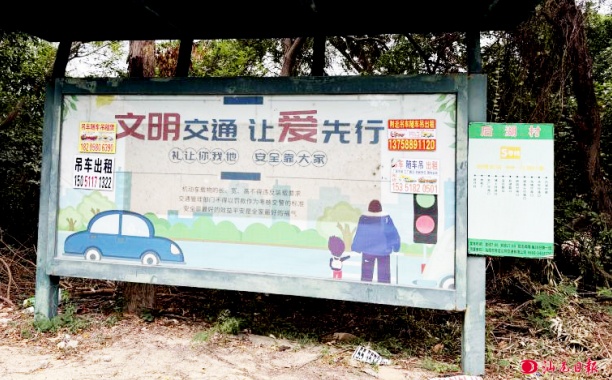 汕尾日報訊(本報記者 文/圖)近日,記者走訪紅海灣田墘三湖路發(fā)現(xiàn),該區(qū)域公交站牌被各類“牛皮癬”小廣告覆蓋,廣告內(nèi)容多為電話號碼加簡短文字。原本用于傳播文化的戶外宣傳欄也未能幸免,成為“牛皮鮮”重災(zāi)區(qū)。